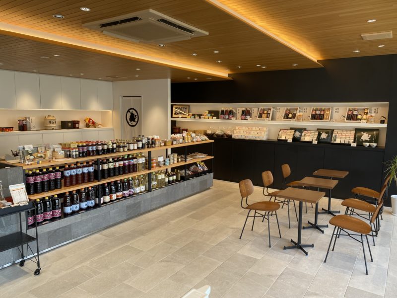 店内は間接照明と自然光を取り入れたオシャレなつくりになっていて、しょうゆやみそが整然と陳列されています。
