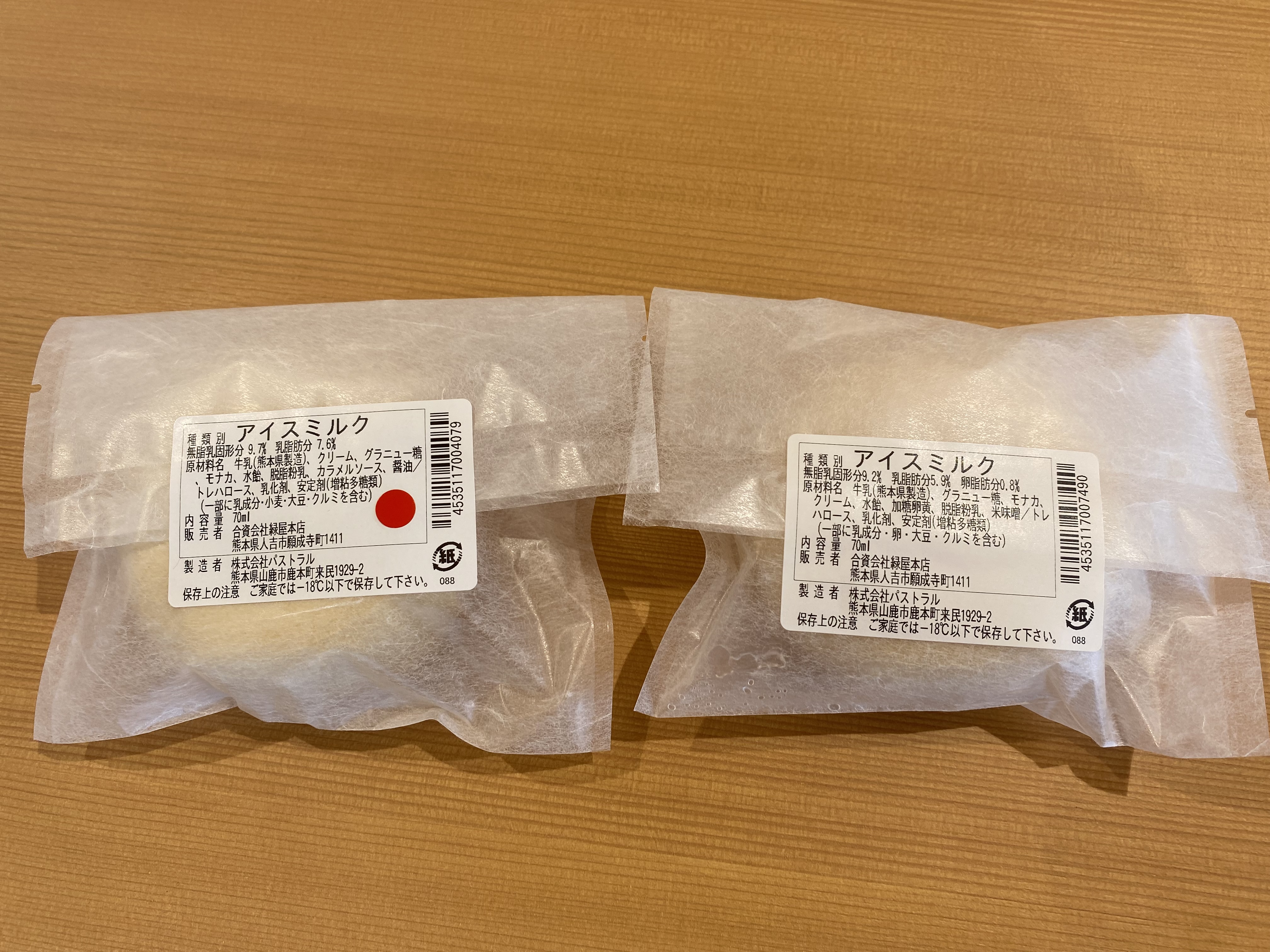 製造元はオーダーメイドアイスで有名な山鹿市のパストラルと書いてあります。全部「made in熊本」