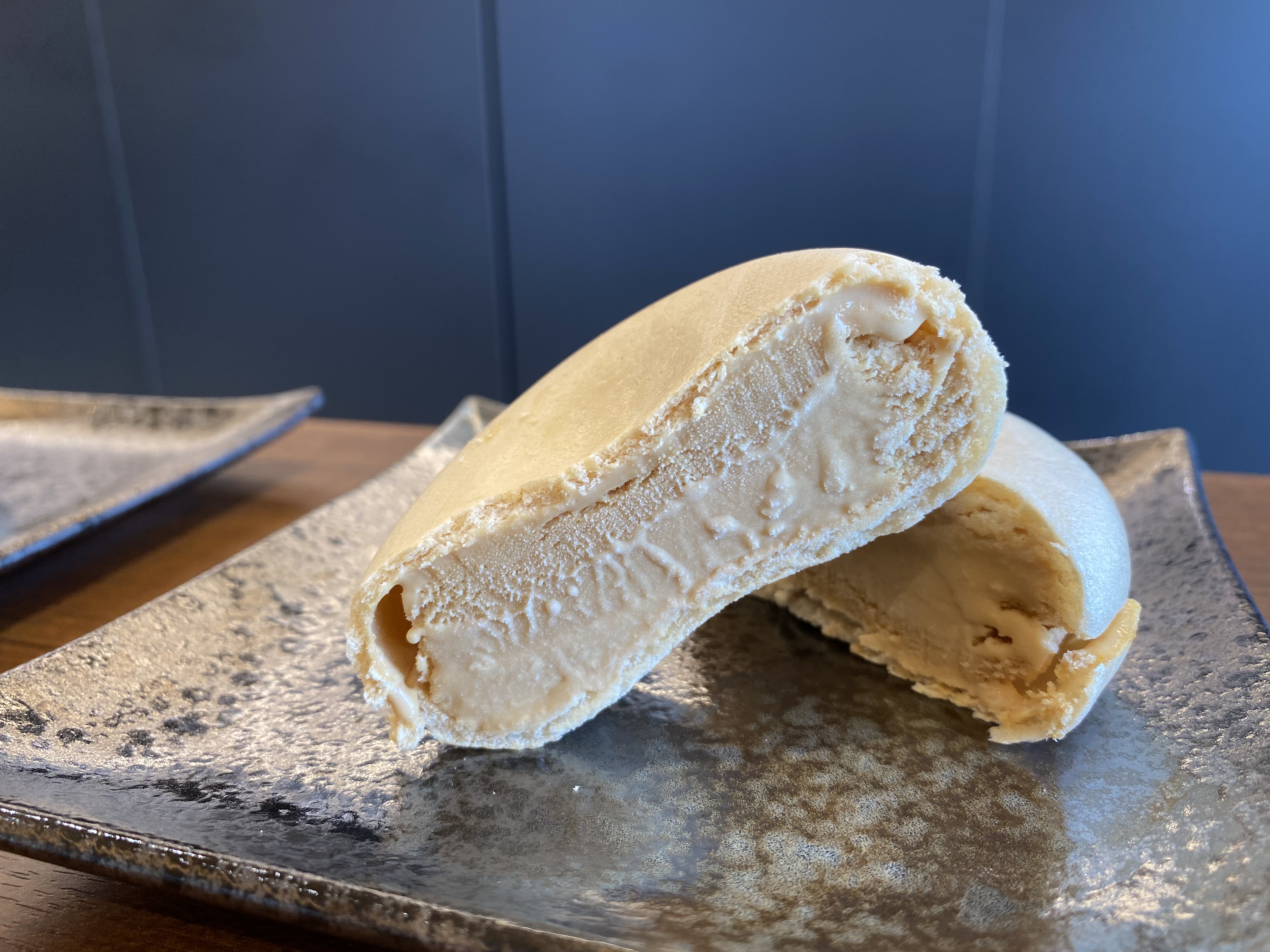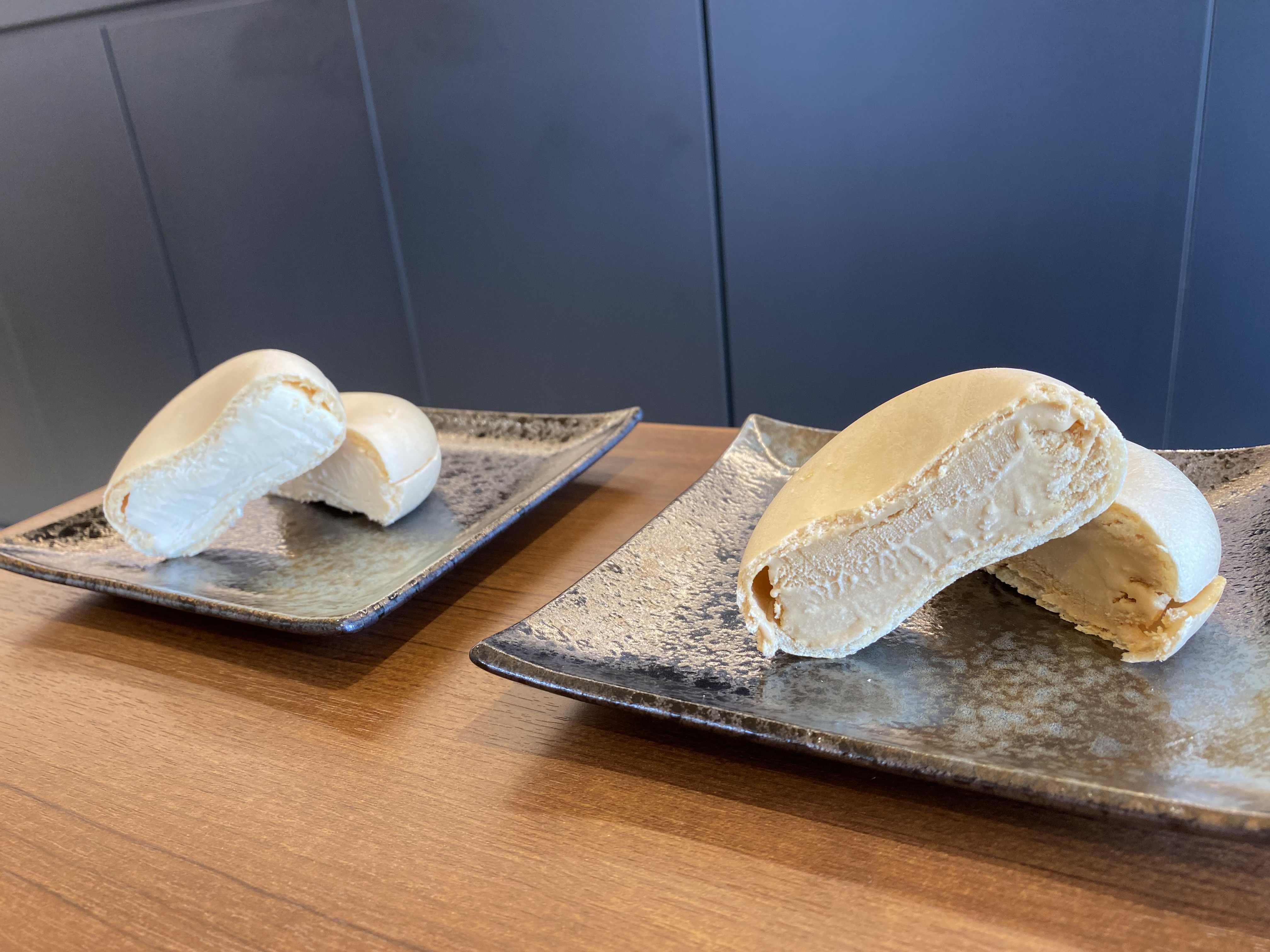 はい、こちらがアイスもなかの「みそ」味と「しょうゆ」味です。