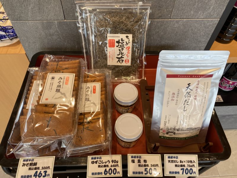 醤油や味噌はもちろん、レジ前には「しょうゆ煎餅」や「だし」など和食の必需品もありましたよ!