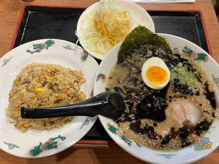 にんにく大好きな私は、迷わず黒マー油ラーメンの半チャーハンセットを頼んでみました。