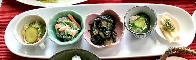毎回用意される5種類もの小鉢には、健康的なお野菜の食材が満載。内容も色々と変わりますので飽きさせません!