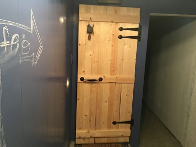 細い通路を抜けて明かりが入った場所でくるりと後ろを振り返ると木製の扉があります。そこが「月のカフェ OVEN」の入り口です。そのまま真っすぐ行ってしまうと反対側に抜け出してしまいますのでご注意を。