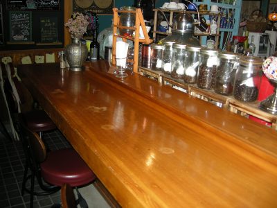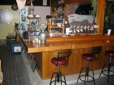 かつて寿司屋だった場所で、すっかりカフェに様変わり。