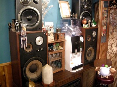店内BGMを流すスピーカーも地震後の処理現場から譲渡されてきたもの。プロが見たらわかるという、かなり良質なブランド価値の高いスピーカーです。