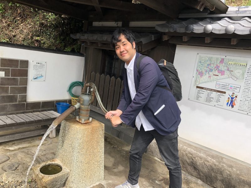 地図があったので、「お墓の場所載ってるかも」と立ち寄ったのですが、なぜか井戸から水を汲み上げてました。ちなみに地図にお墓の場所は記載されておらず。