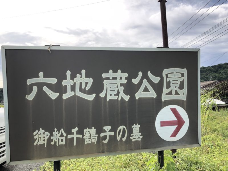 ところどころに六地蔵公園または御船千鶴子さんのお墓を示す看板があります。