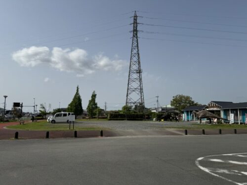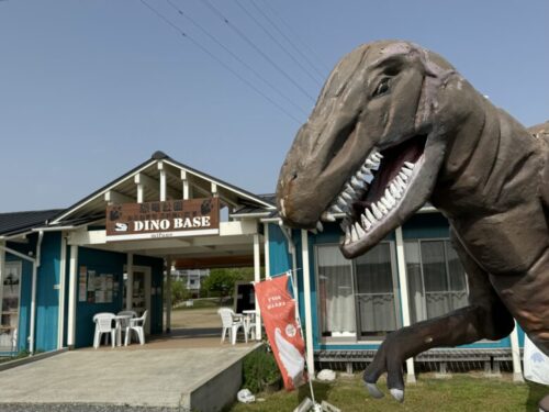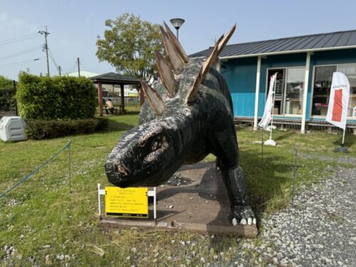 恐竜がお出迎え!国道445号線の西側パーキングエリアから入場しました。
