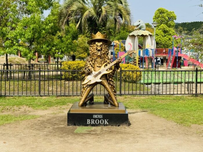 「ONE PIECE麦わらの一味」ブルック像が御船町に設置されました。熊本県と熊本県出身の漫画家・尾田栄一郎氏が描く人気漫画『ONE PIECE』が連携した熊本復興プロジェクト麦わらの一味ヒノ国復興編の一環として、御船町にブルック像が設置されました。