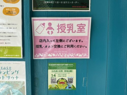 入口のディノベースみふね(多目的センター)には授乳室もあります。ソフトクリームなどを販売されているこちらは、月曜日、木曜日は定休日なのでお気を付けください。