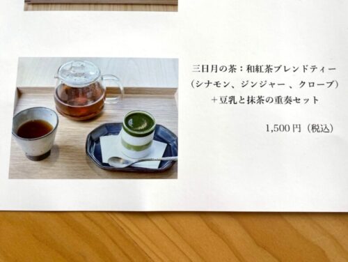 今回注文したのは、シナモンやジンジャー、クローブの入った和紅茶ブレンドティーと、豆乳と抹茶の重奏セット。