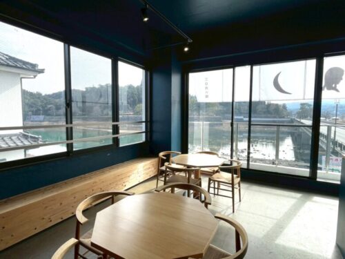 2階に上がってみると、左側には雄大な球磨川を眺められるカフェコーナーがあります。