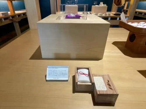 ここに、アクセサリーなどのグッズや抹茶、ご朱印帳などが並んでおり、販売もされていますので、後ほど詳しくご紹介いたします。