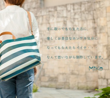 MIKO…福岡生まれ、熊本育ち。皮工芸を初め帆布バッグに日常にある風景をそのままペインティングするバッグが好評。