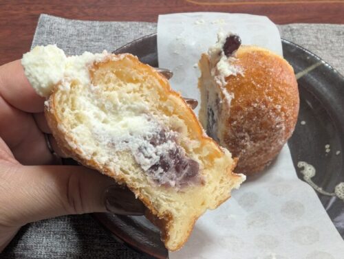 中のホイップがアーモンドミルクになった宇土店限定ドーナツ。
