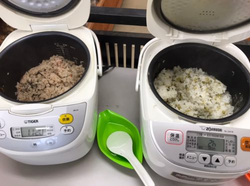 さらに、梅ひじきご飯、じゃこと漬物ご飯、これに味噌汁やカレーまで食べ放題という大盤振る舞いで、これで採算がとれるのか不思議です。