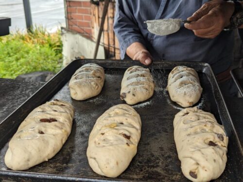 豊富過ぎるパンにどれを買おうか悩んでいる間にも、外の石窯で焼き上げられたパンが運び込まれます。
