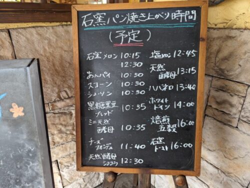 石窯パンの焼き上がり時間が書かれた黒板がありました。