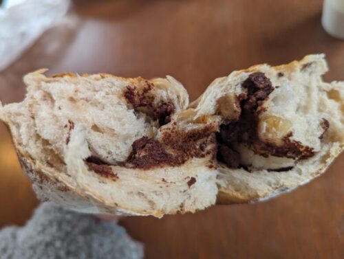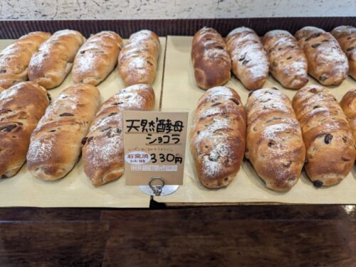 天然酵母ショコラはレーズンとチョコ、クルミがたっぷり入っていてハードパンなのにふんわりで大満足。