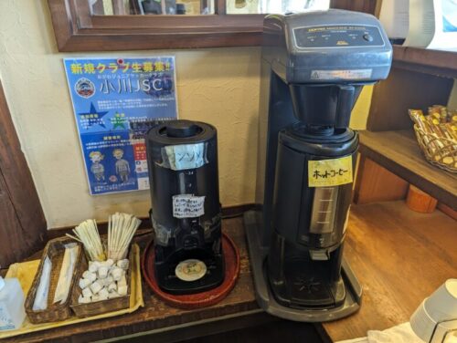 イートインコーナーの利用者にはホットコーヒーとコンソメースープ無料のサービスがあります。