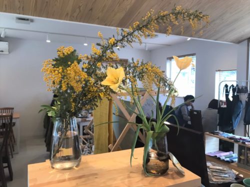 店内には、お客様が持ってきてくださったというミモザの花が飾られており、ナチュラルで優しいお店の雰囲気を象徴しているようです。