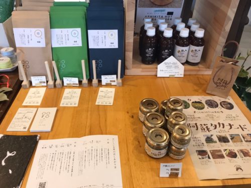 お茶や阿蘇タカナードなどの食品類まで、バリエーション豊富です。日常を潤してくれそうなグッズや、ギフトにも良さそうな商品が並び、思わずほしくなってしまうものがいっぱいです。