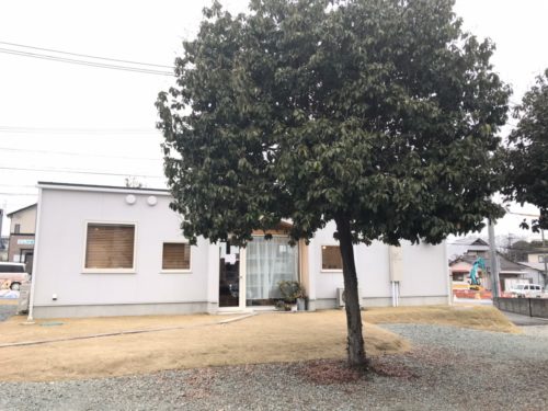 お店の裏に駐車場があり、庭にはどんぐりの木が一本。