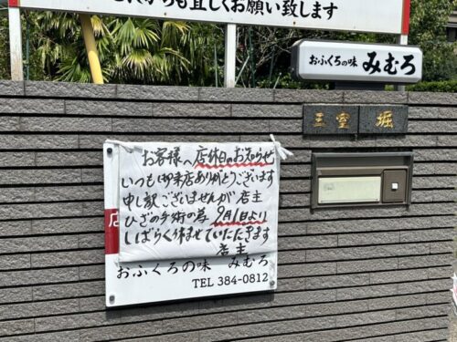 で、お馴染み県庁横にある「おふくろの味みむろ」が休業に入るそうです。