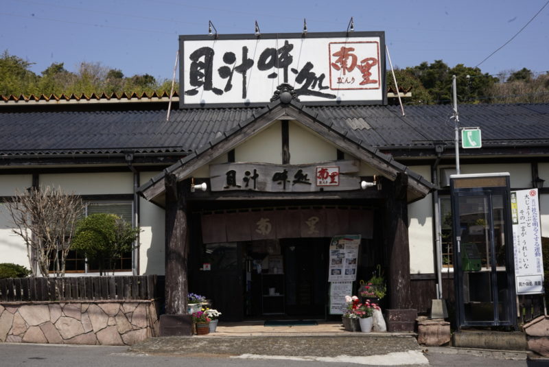 華麗なドライビングテクでやってきたのは、南里。貝汁が絶品で熊本で2番目に古いドライブインだそう。