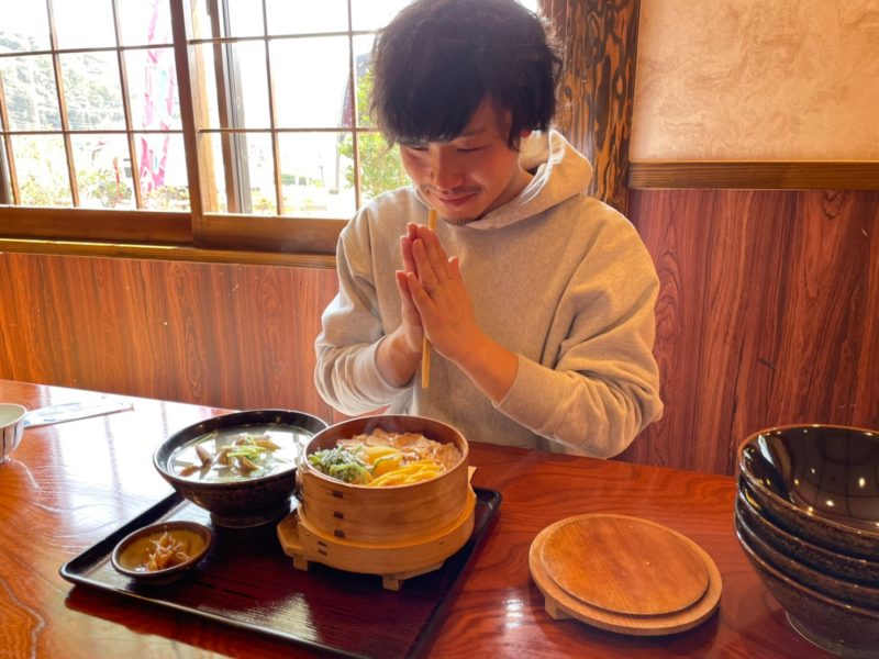 そりゃお腹が空いてて、こんなに美味しいもの食べたら誰でも笑顔になりますよ。まだまだ水俣最高だと認めたくないですが、ここの貝汁とわっぱ飯は絶品でした。