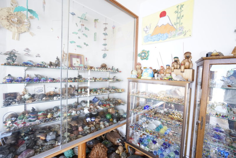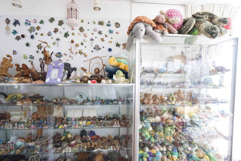 虫メガネ。なんでこんな大量に亀の置物が置いてあるんですか?