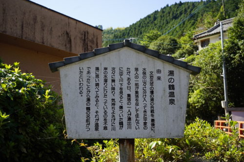湯の鶴温泉とは…700年前に平家の落人によって発見された。鶴が湯浴みをし体を癒していたところを発見したことから、湯の鶴の名前が付いたと言われています。