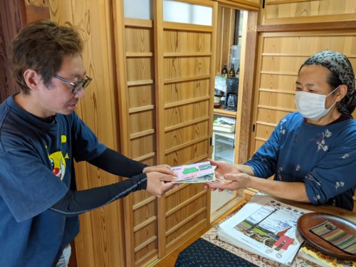インストラクターの海岳:杉本さんに、5,000円とみなまた観光応援券1,000円の合計6,000円(保険料込)お支払い。