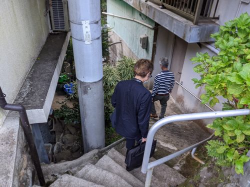 狭い路地階段に連れ込まれました。