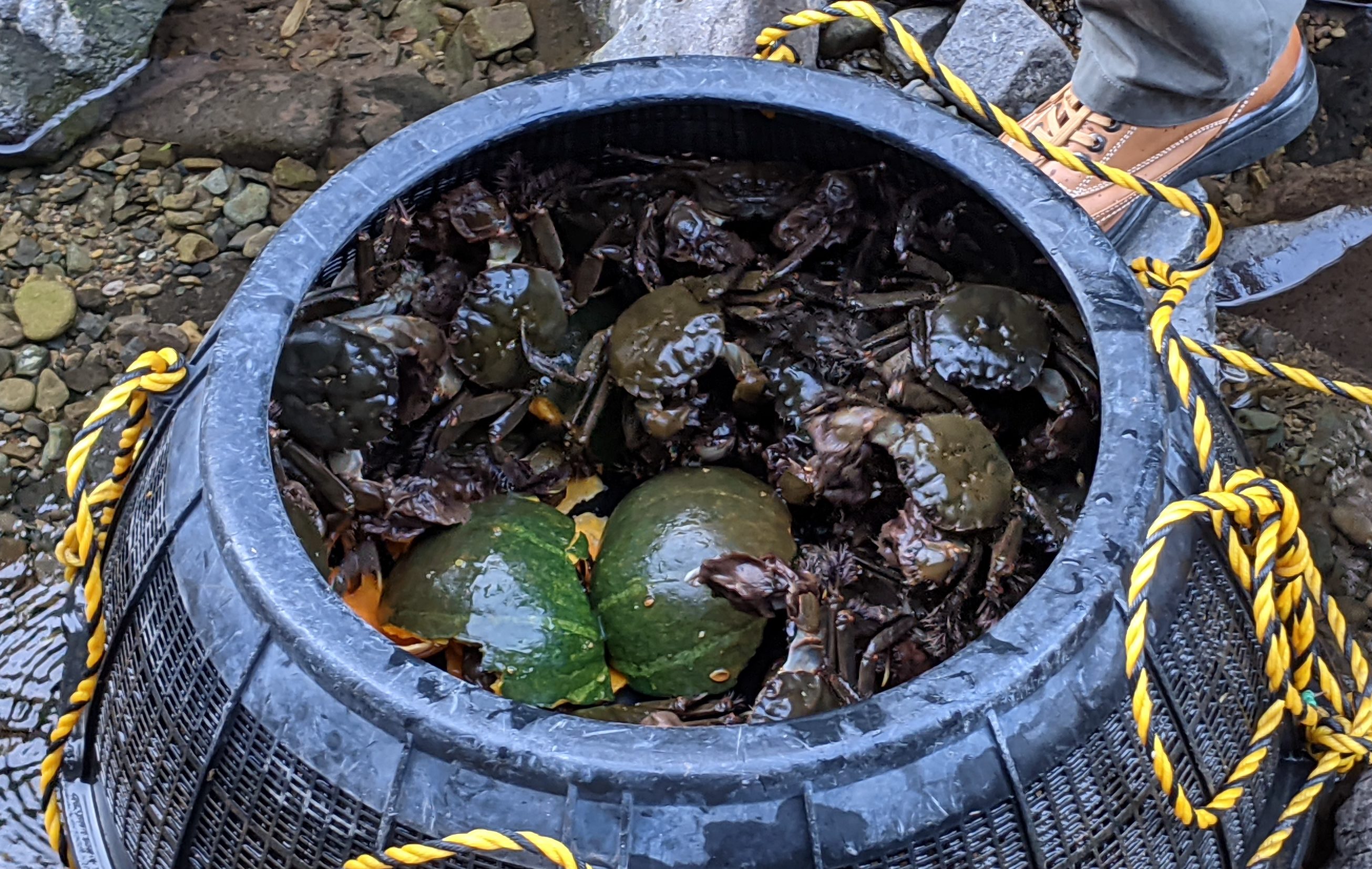 話を聞くと、このカニは「モクズガニ」というそうで、淡水に住む蟹としては最大級。湯出川のカニはかぼちゃが大好きで、その所為か身も味噌も甘みが豊富。