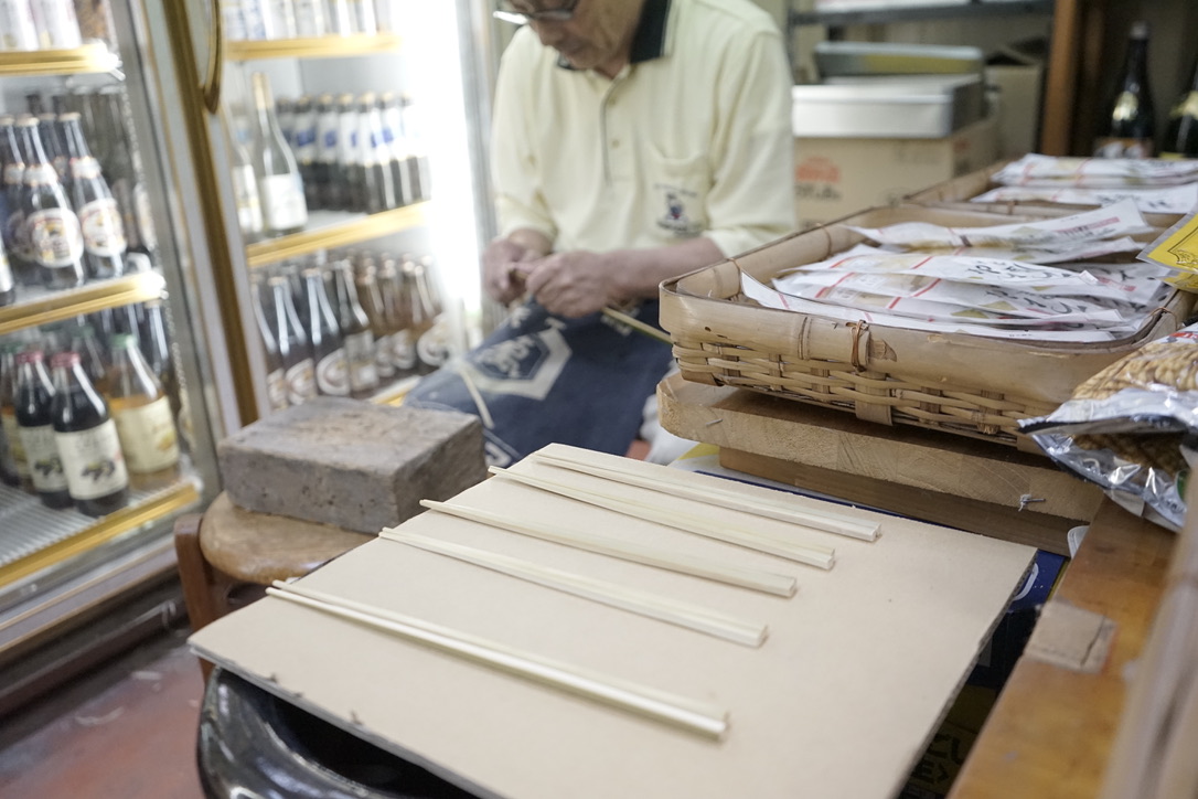 地元で採れた竹を削って、箸を作ってらっしゃいました