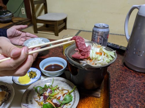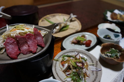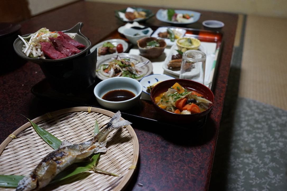 待望の喜久屋旅館にただいま!自然の恵たっぷりの晩御飯