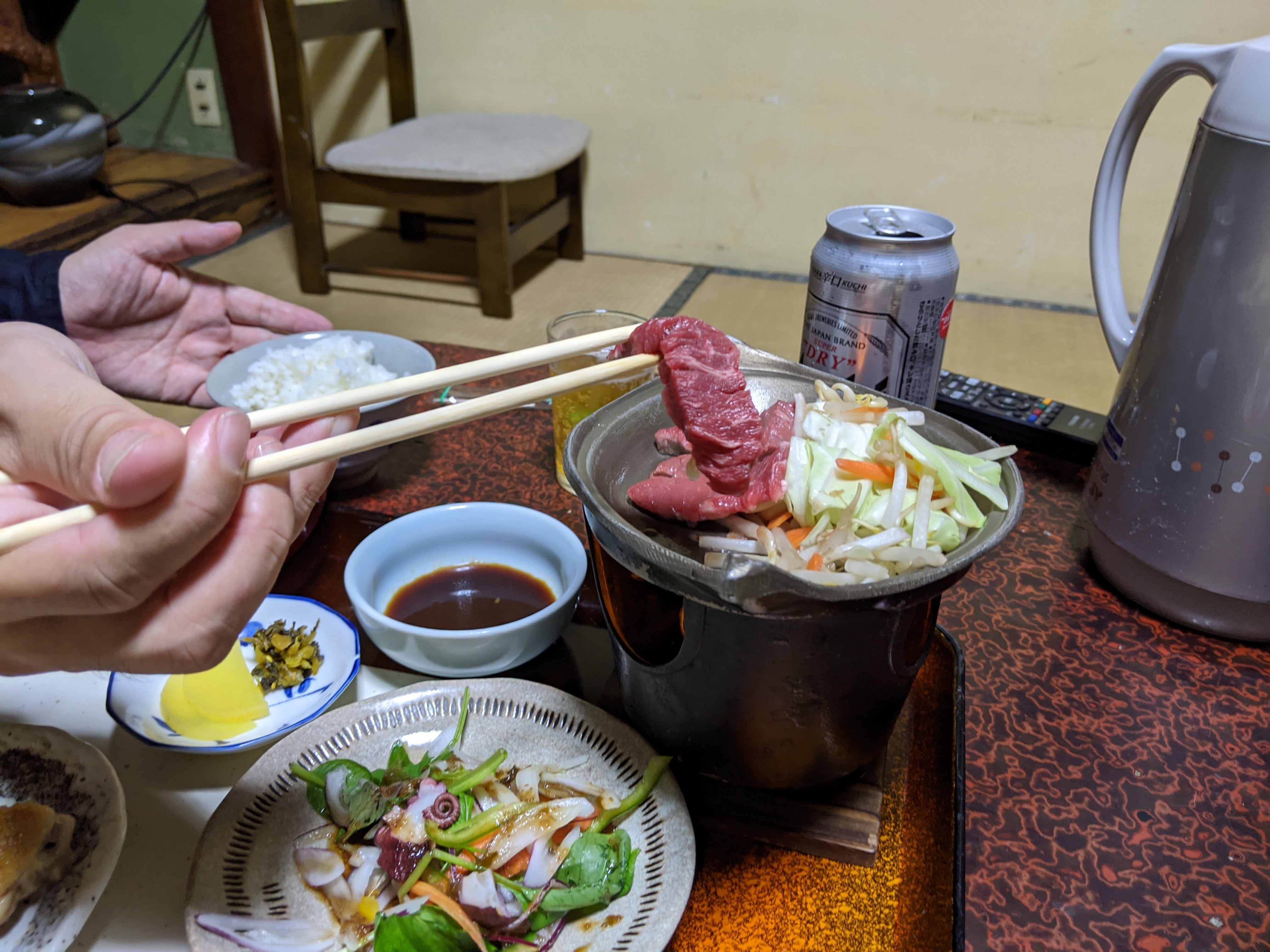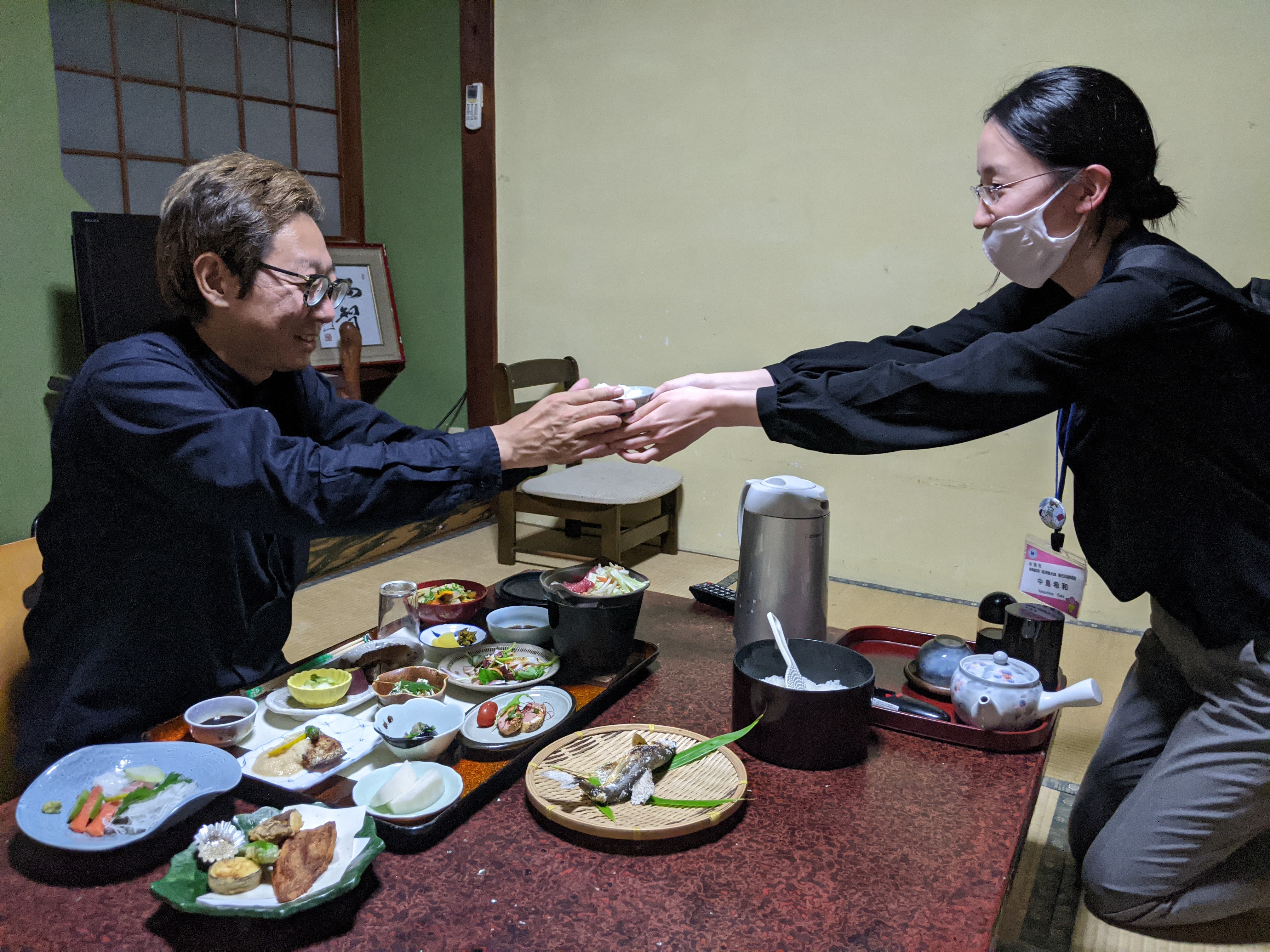 女将さんの「晩御飯できましたー」の声が。別室に案内されます。