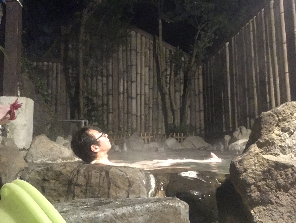 温泉街を3往復ほどしたので、足が疲れていましたが、ぬるめの温度が徐々に疲れを取っていきます。