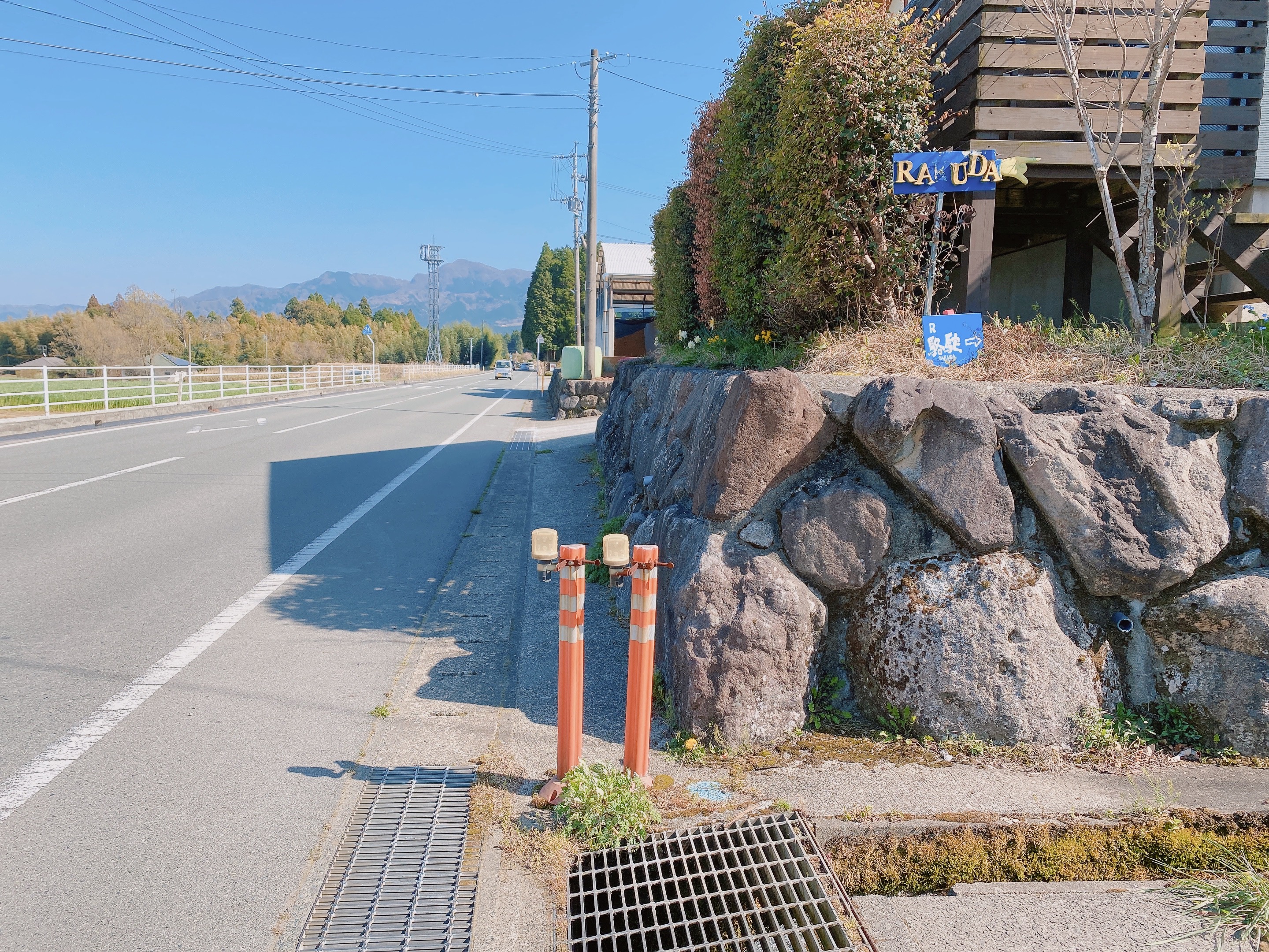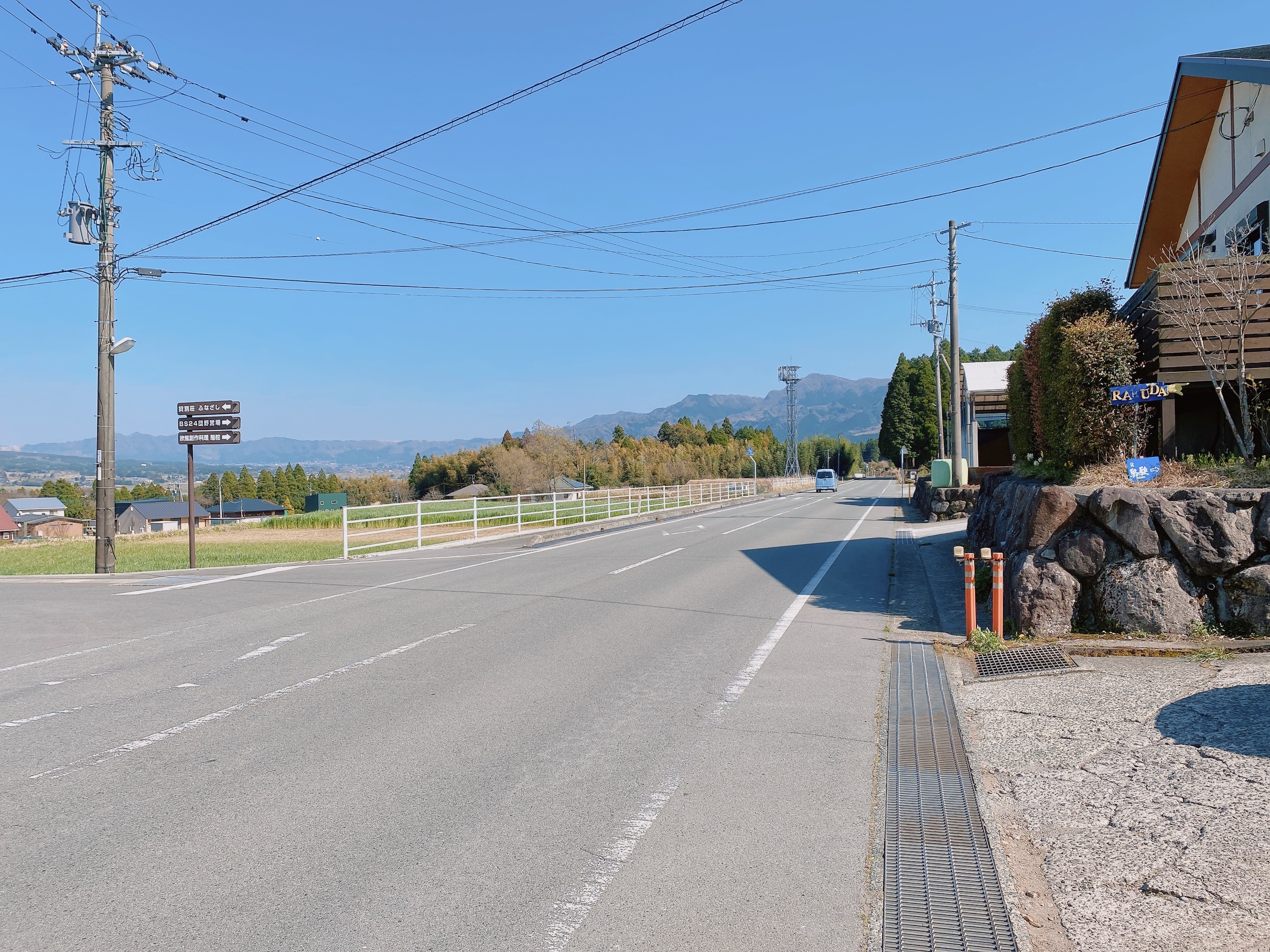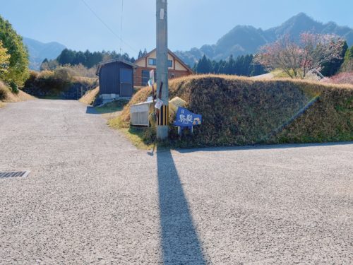 青い看板から右に曲がります。グーグルマップでは1つ手前の道を案内され、行き止まりになり、バックで戻ってきましたので、この看板が見えてから曲がってくださいね。