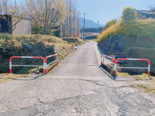 曲がって真っすぐ進むと、橋があります。まだまだ先に進みます。道が狭いので離合には中止してくださいね。
