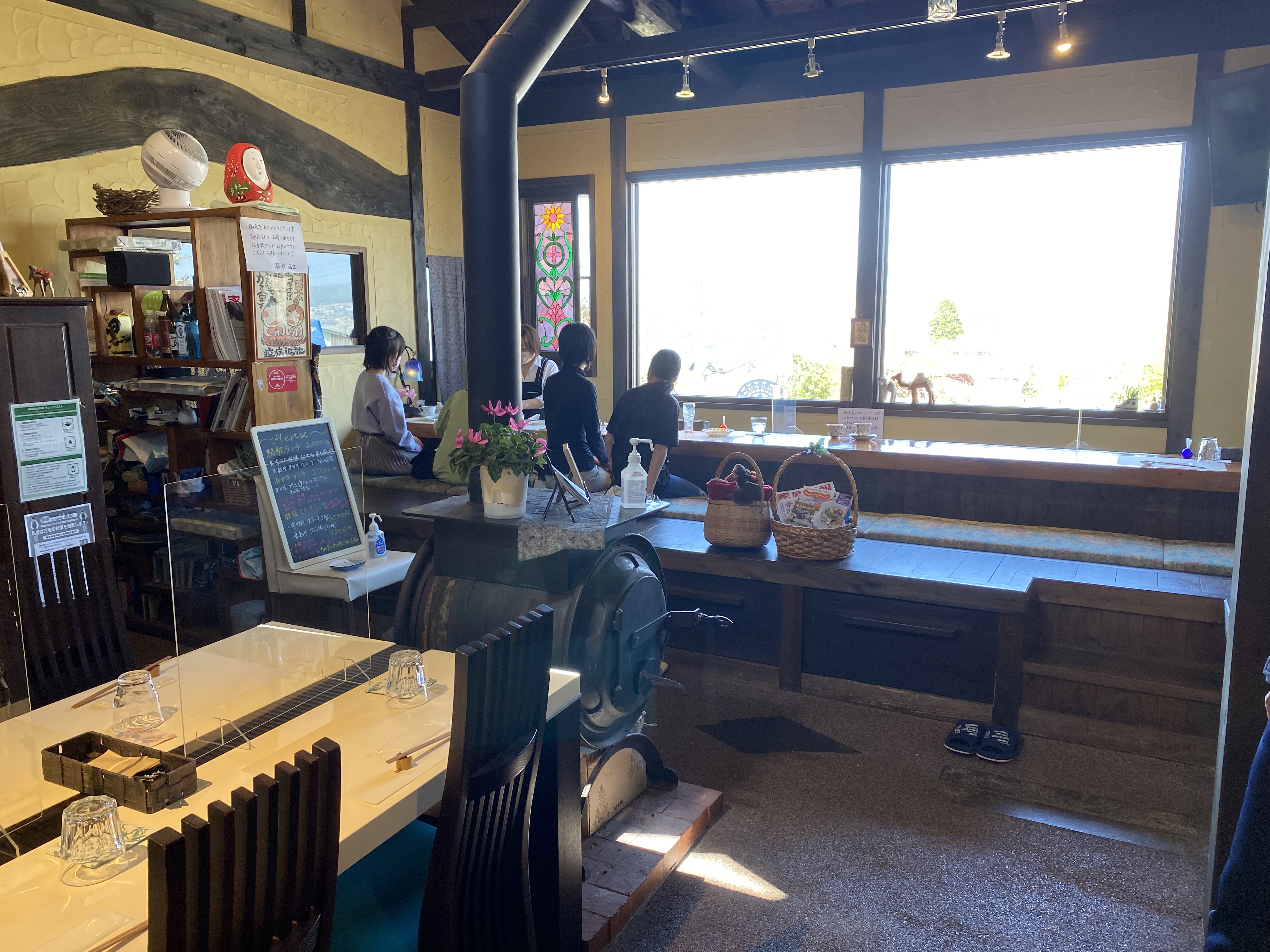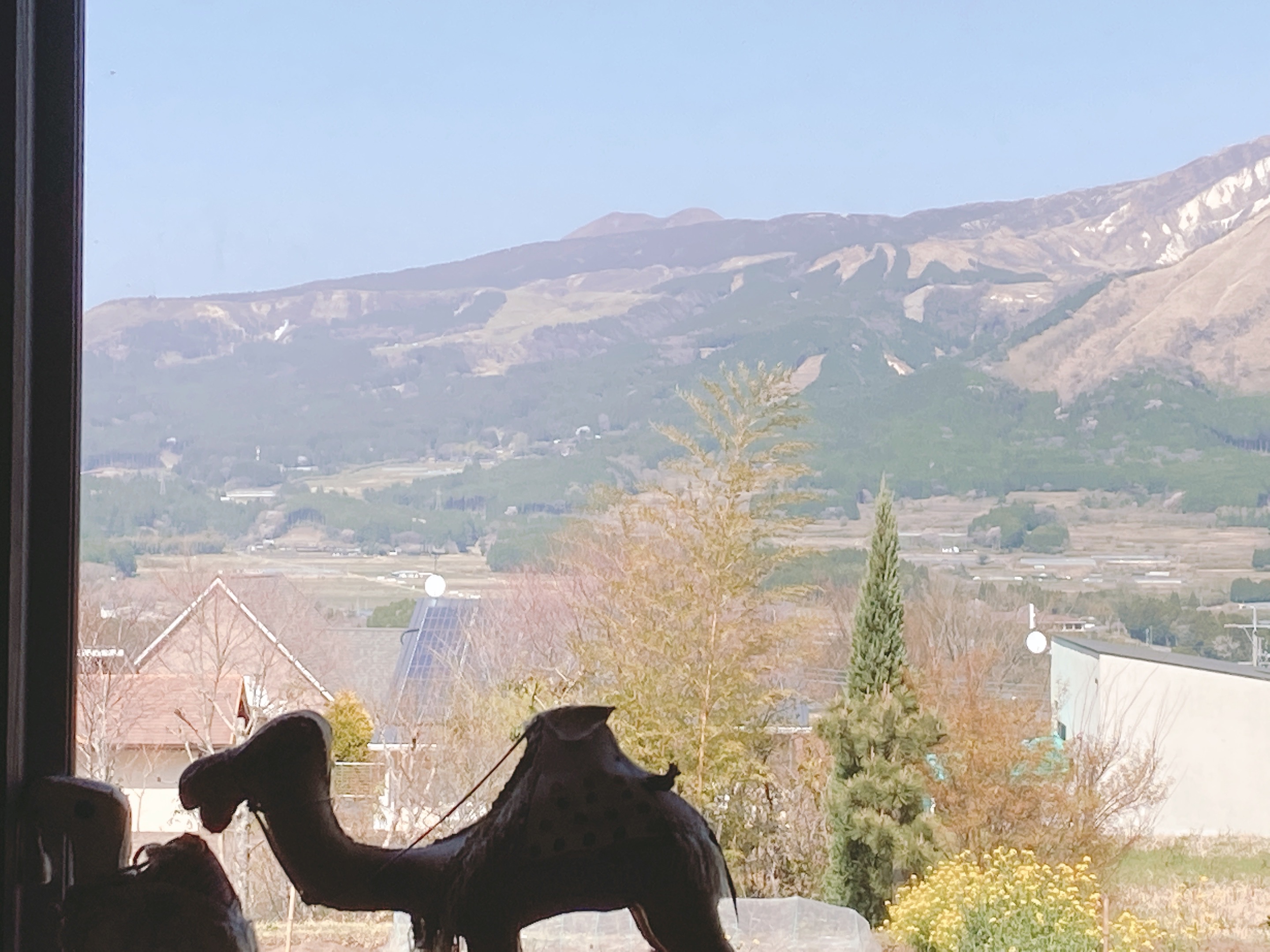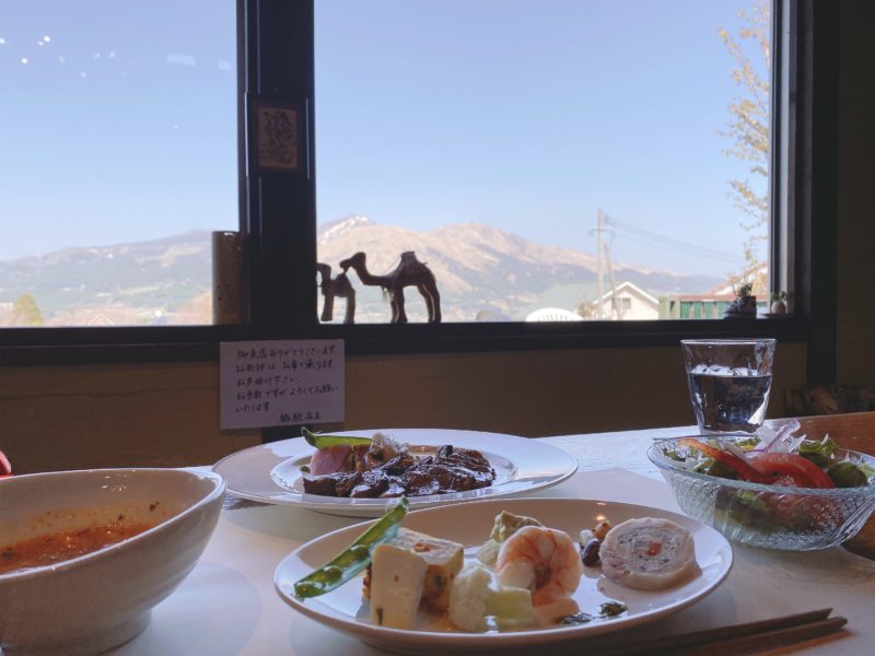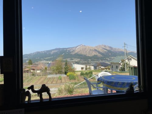 阿蘇五岳を眺めながらランチをいただける。窓が額縁のようで、絵を観ているようです。