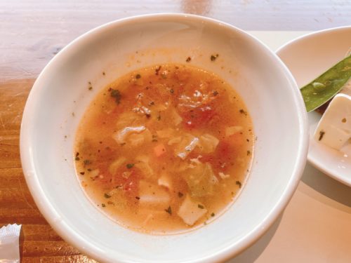 野菜にスープ。丁寧に作ってあり、素材の味がしっかりとします。