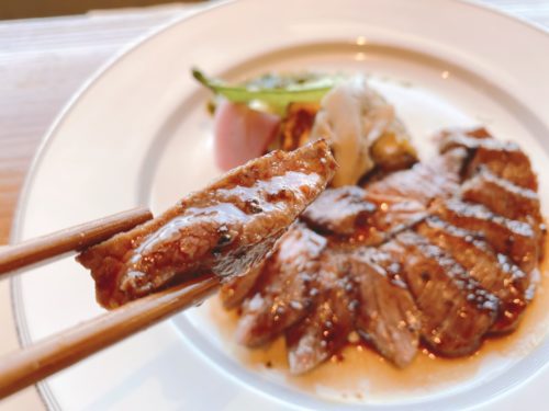 一口サイズにカットしてあり、お箸でいただくフレンチ。