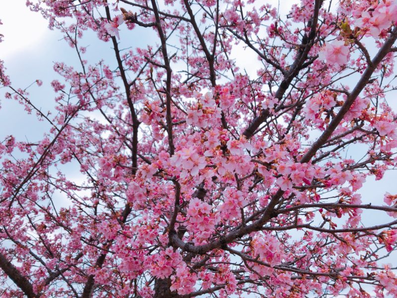 「河津桜」はピンク色の桜で、3月の2,3日頃から満開を迎えているとのこと。