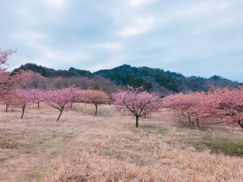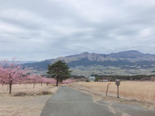 河津桜が満開という情報を聞きつけやってきたのは、南阿蘇桜公園。熊本県野外劇場アスペクタに隣接しています。