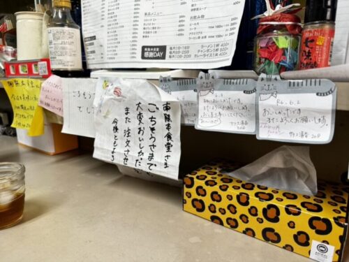 たくさんのメッセージが、カウンターに貼ってあります。