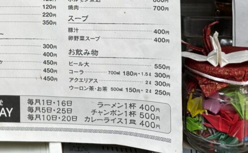 毎月1日と16日はラーメン1杯400円です!
