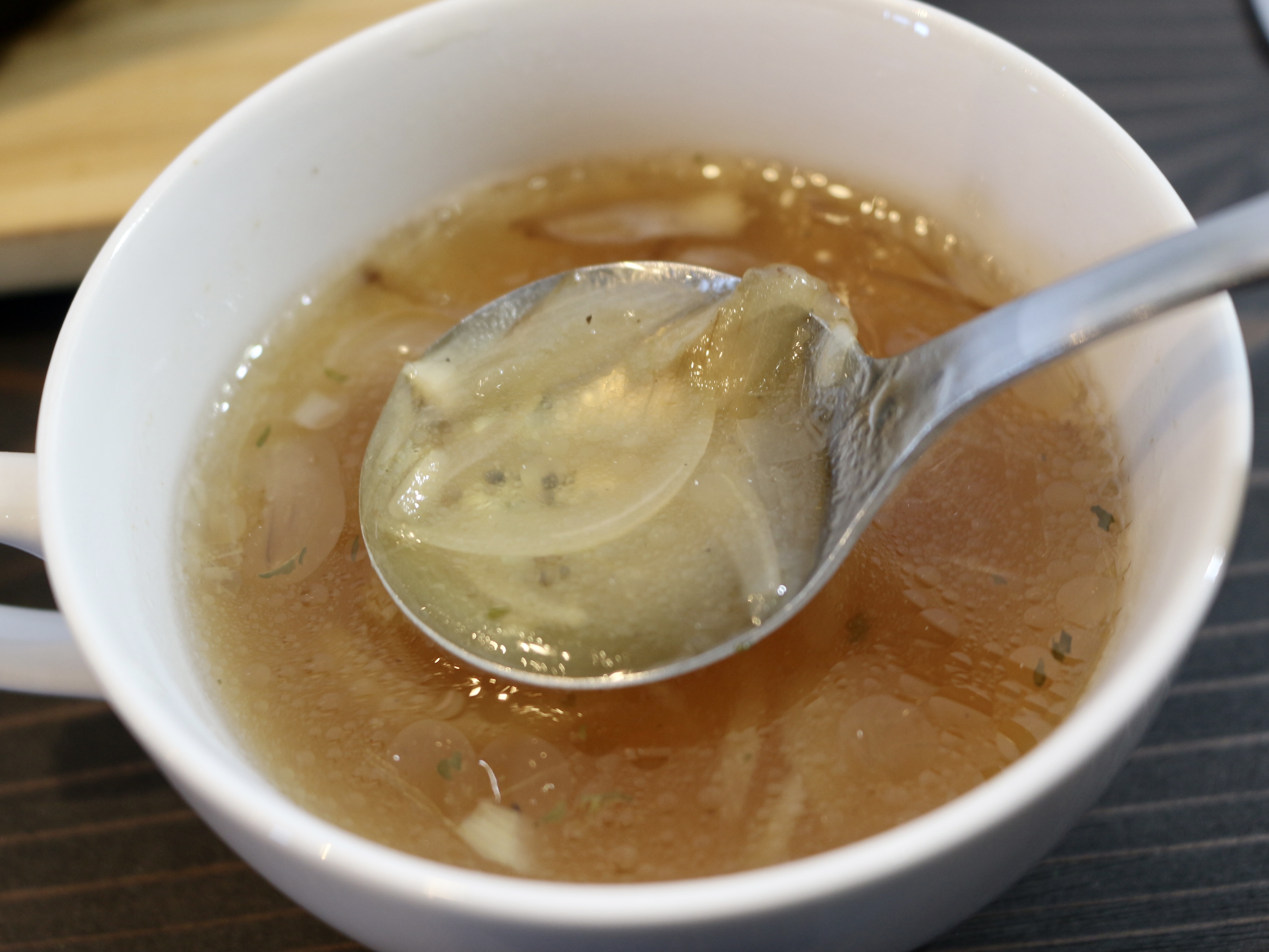 たっぷり玉ねぎが入っていて、甘さが溶け込んでいるスープです。