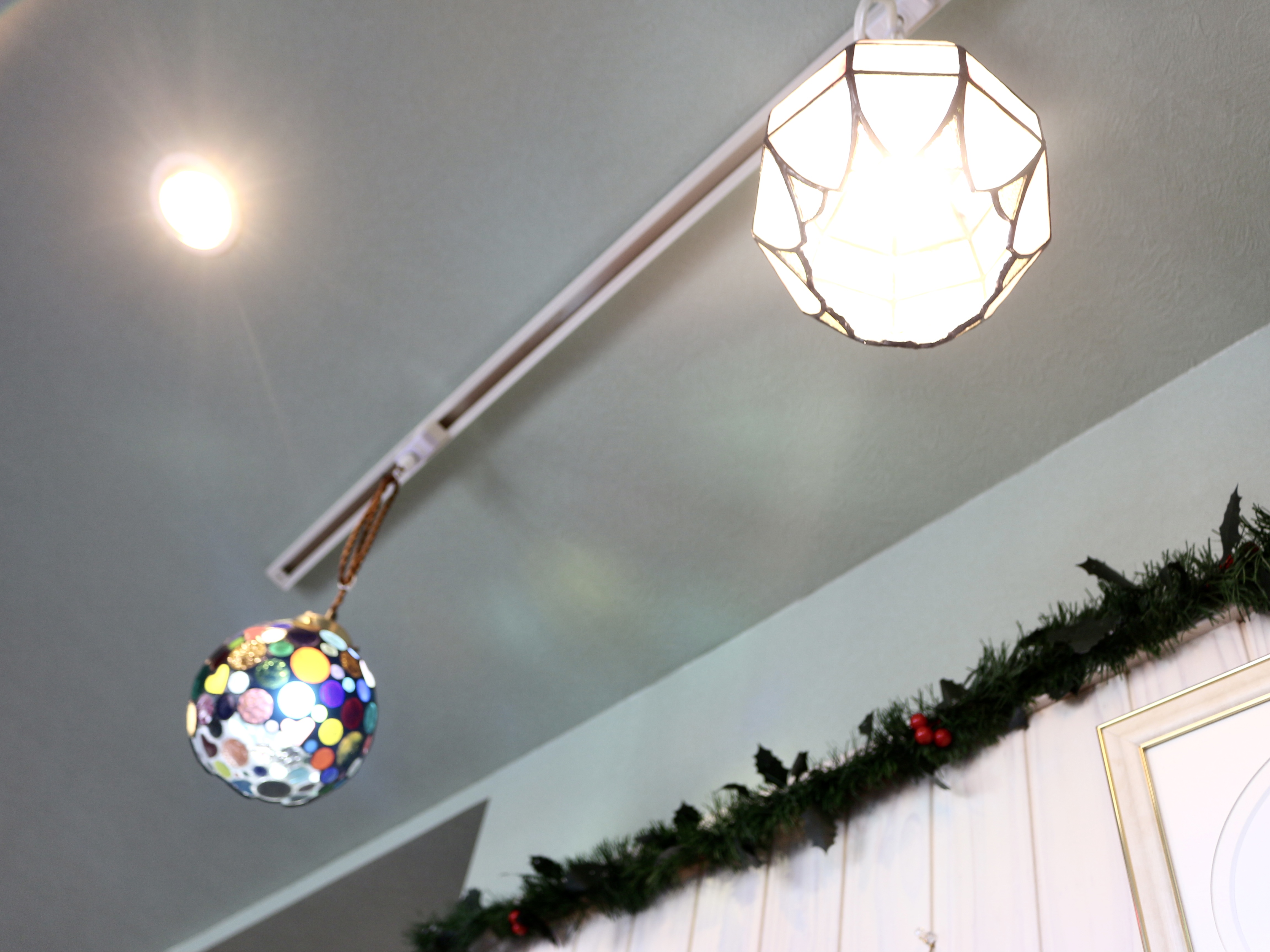 このステンドグラスはオーナーさんが趣味で作られたものなんだそう。多彩。